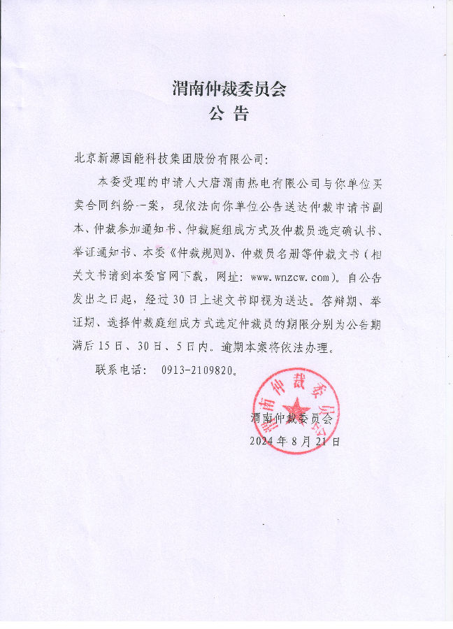 北京新源國(guó)能科技集團(tuán)股份有限公司買賣合同糾紛案公告